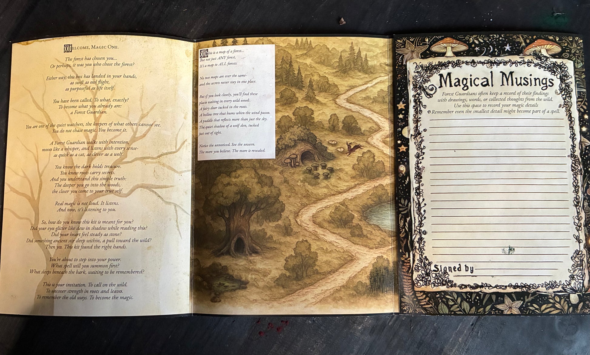 Inside, you’ll find everything needed to create your own forest spells, map your discoveries, and awaken the ancient power that only true Forest Guardians know.